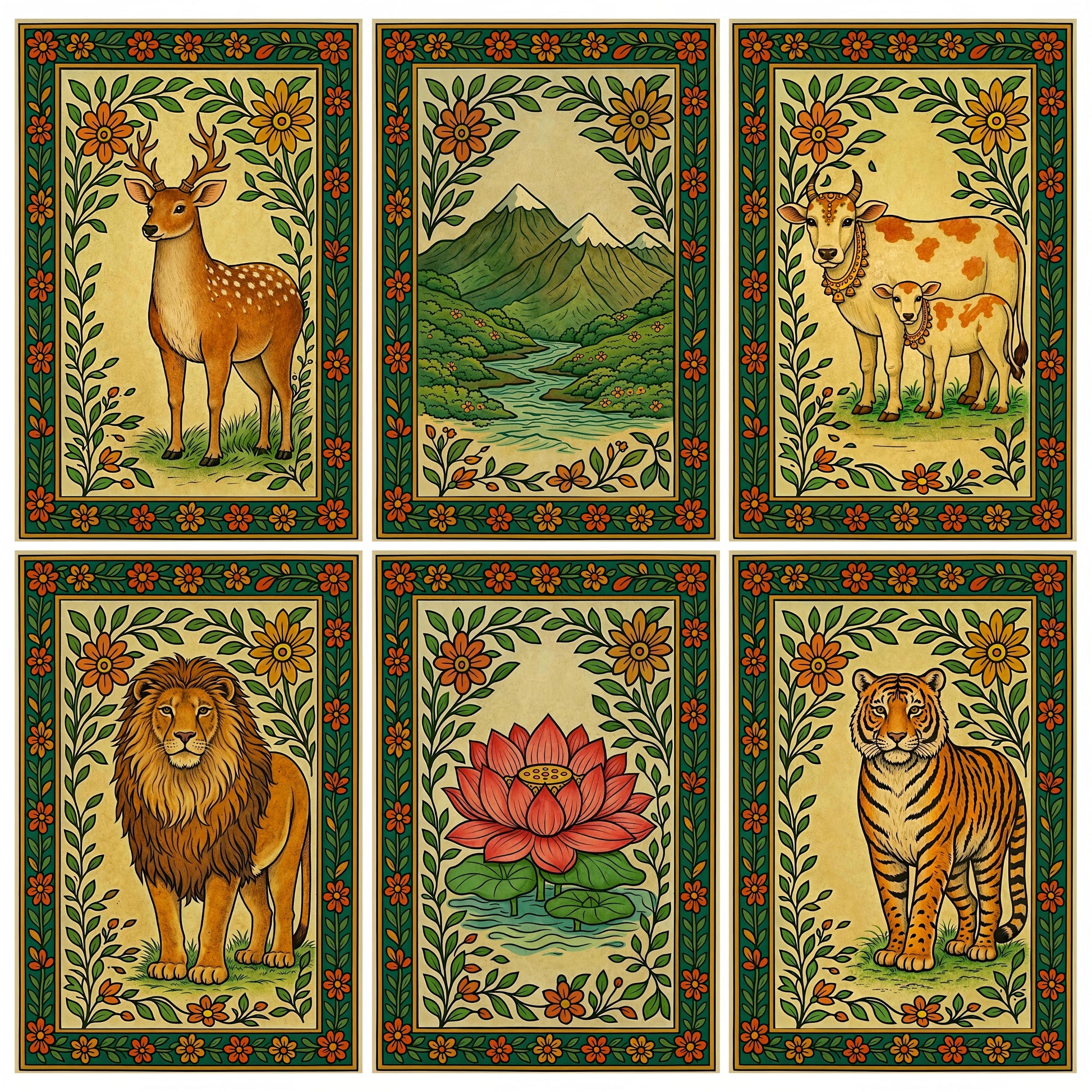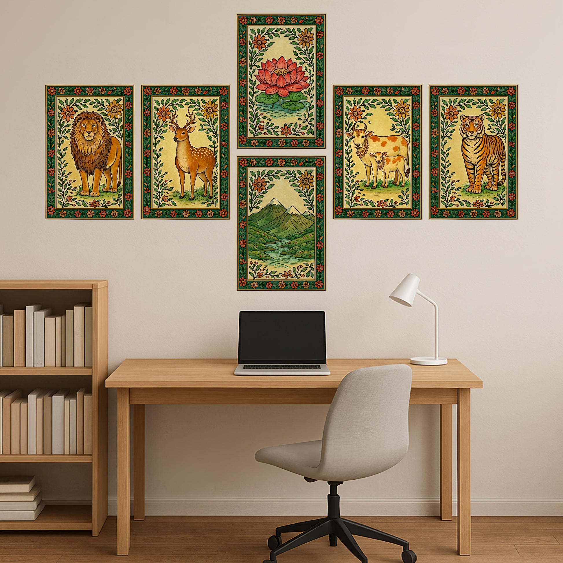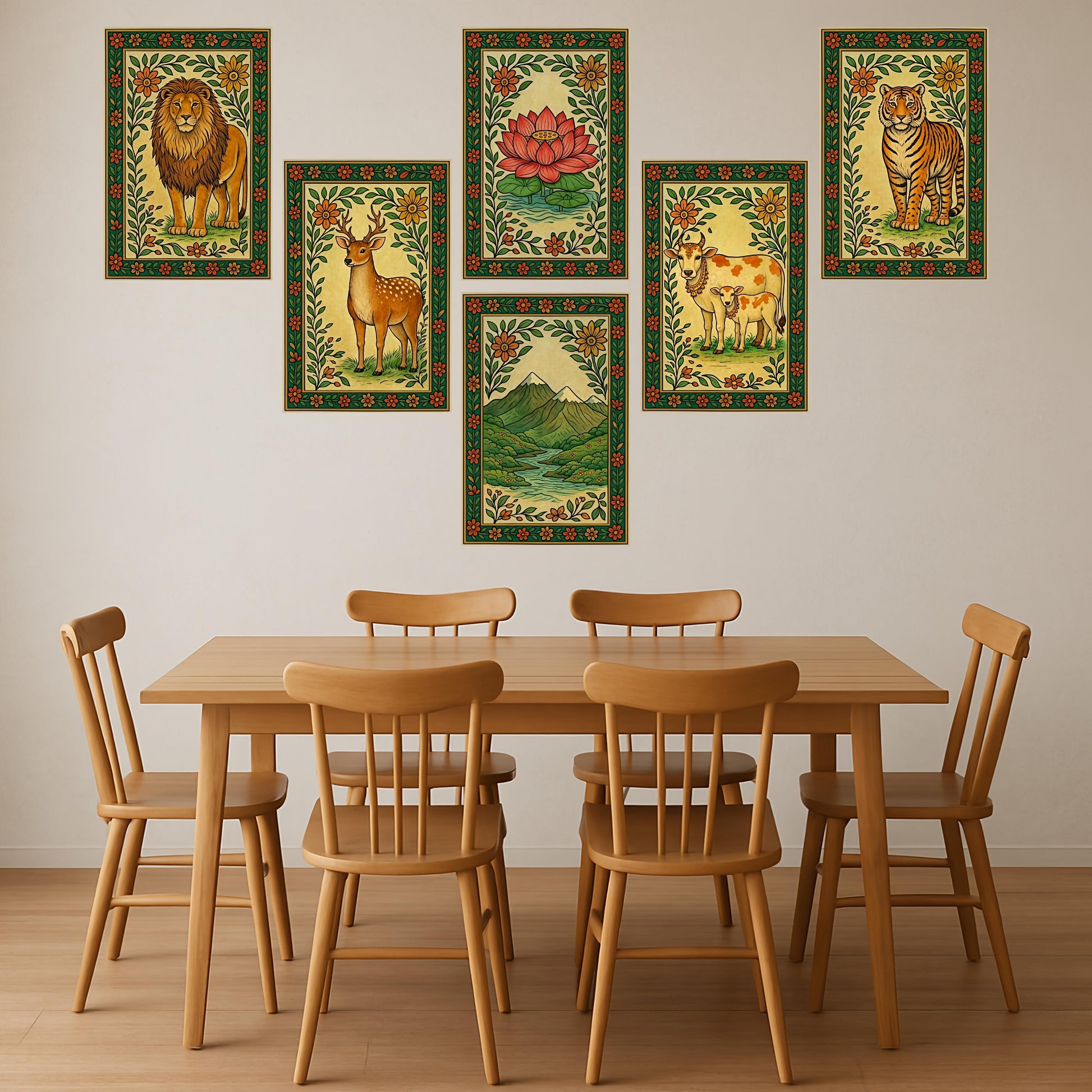 Premium Madhubani Paintings Wall Art Poster Combo Set | Pack of 6
