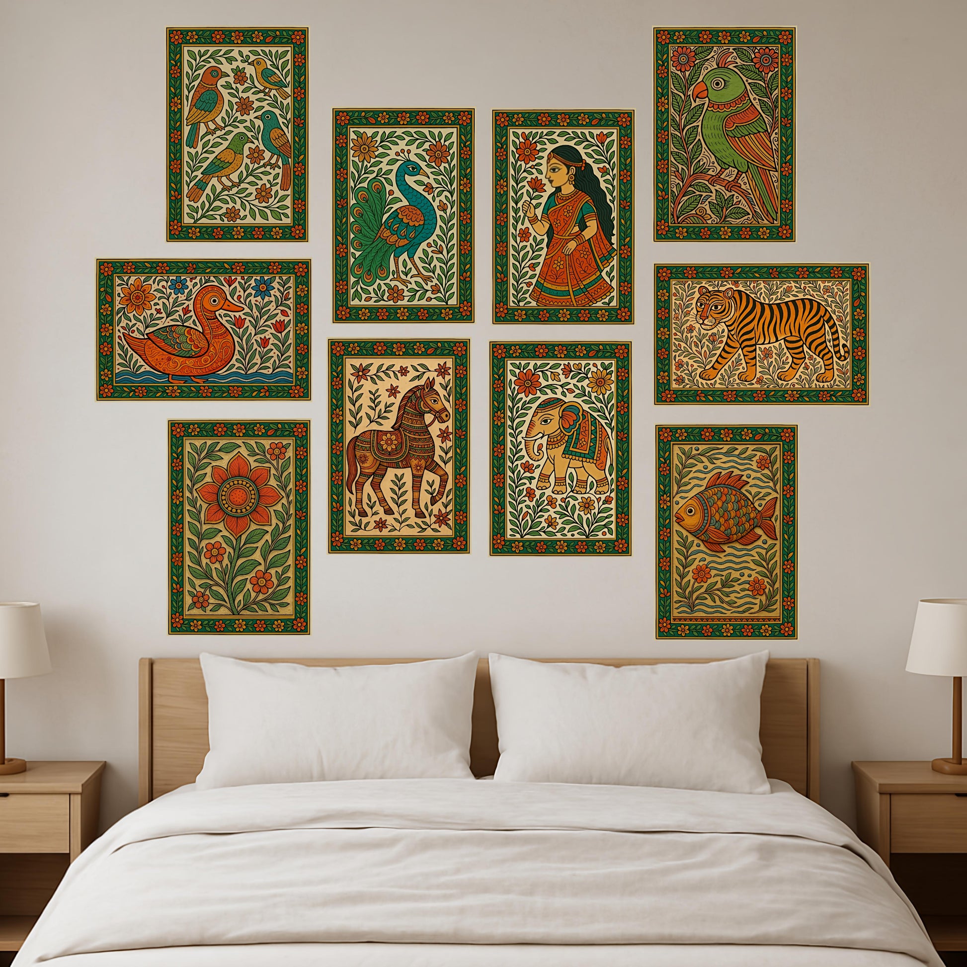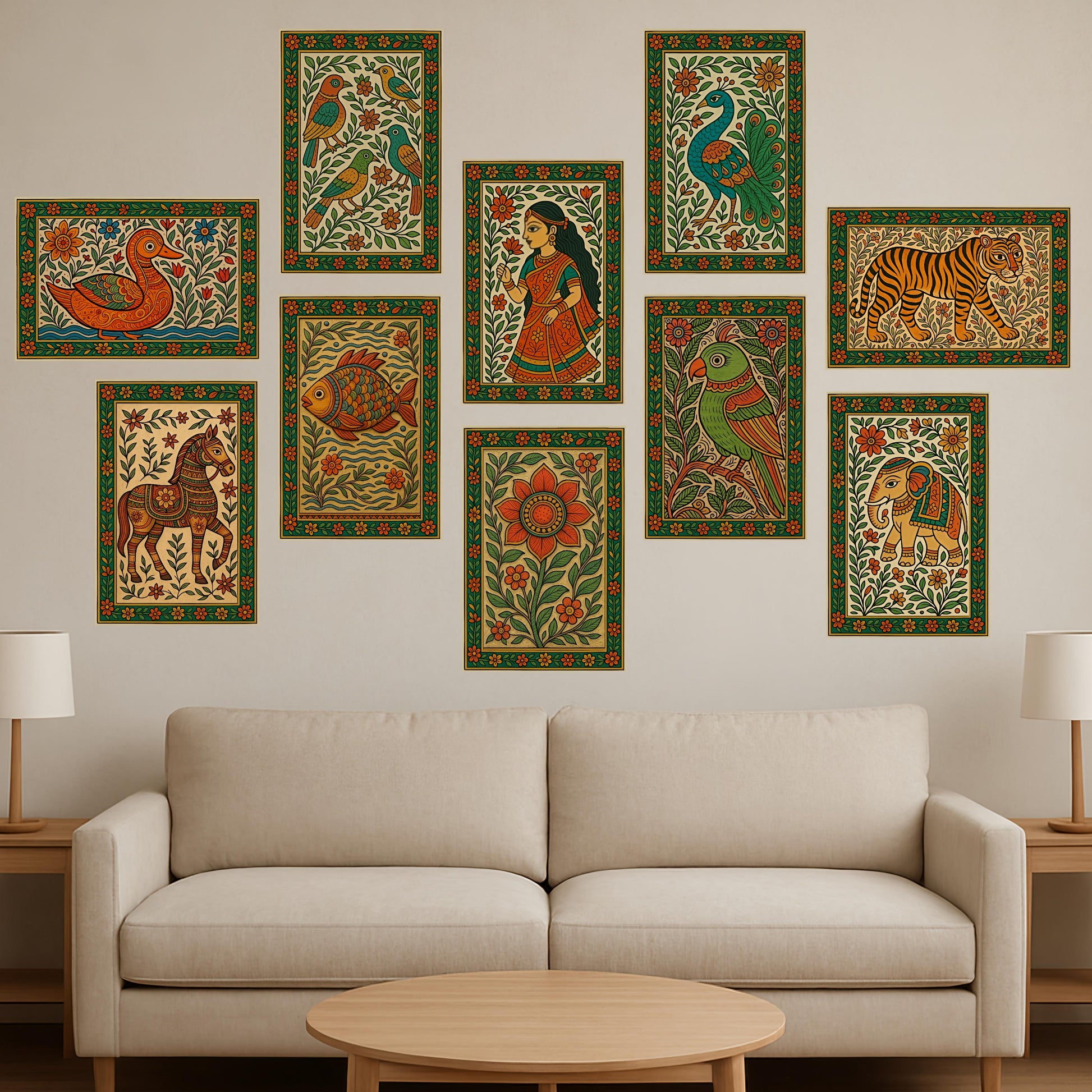 Premium Traditional Madhubani Painting Poster Combo Set for Modern Wall Decor.
